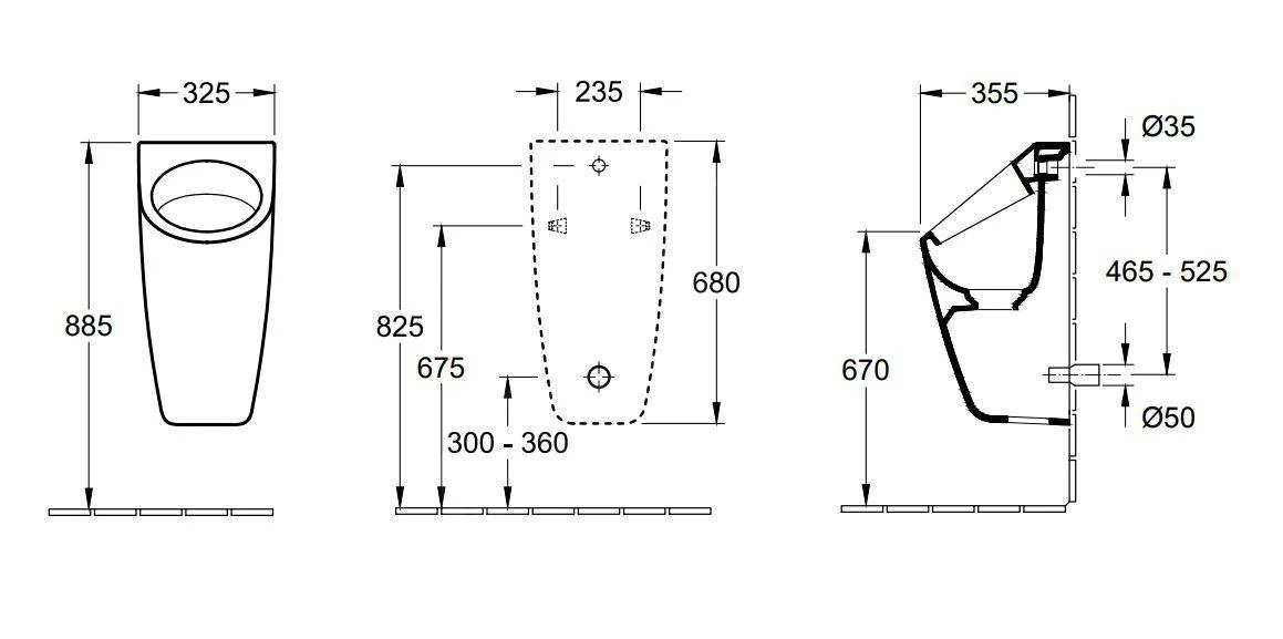 ViChange speciaal systeem voor sifonurinoirs, met in hoogte verstelbare afvoer; sifon kan worden vervangen zonder het urinoir te demonteren.