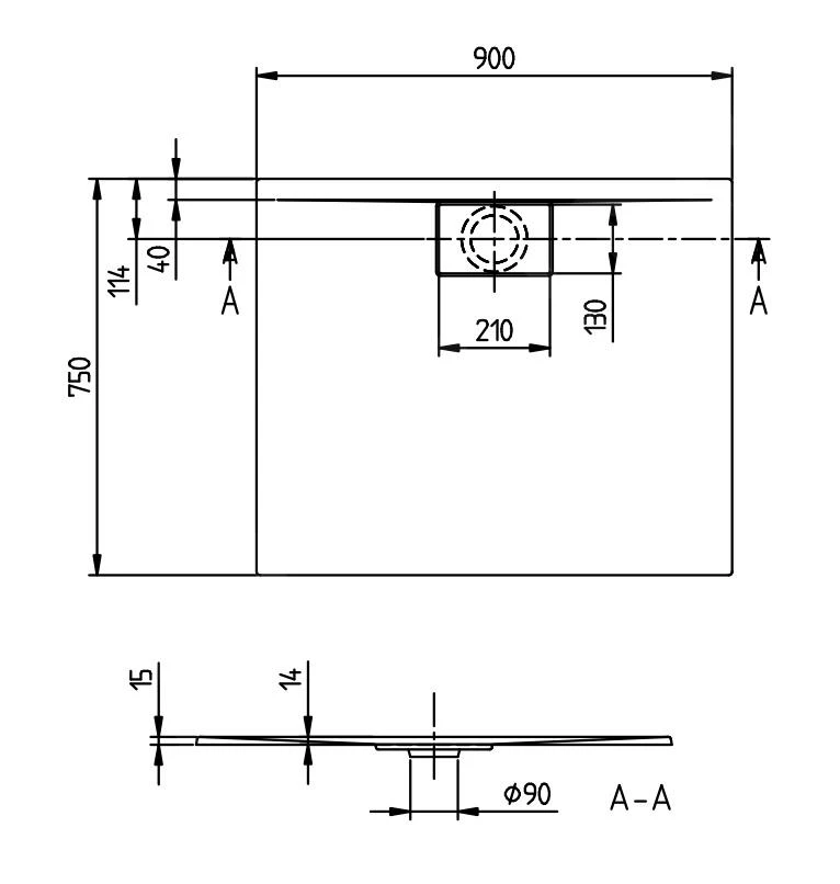- geleverd inclusief afvoerafdekking met afmetingen: 130 x 210 mm in de kleur van de bak