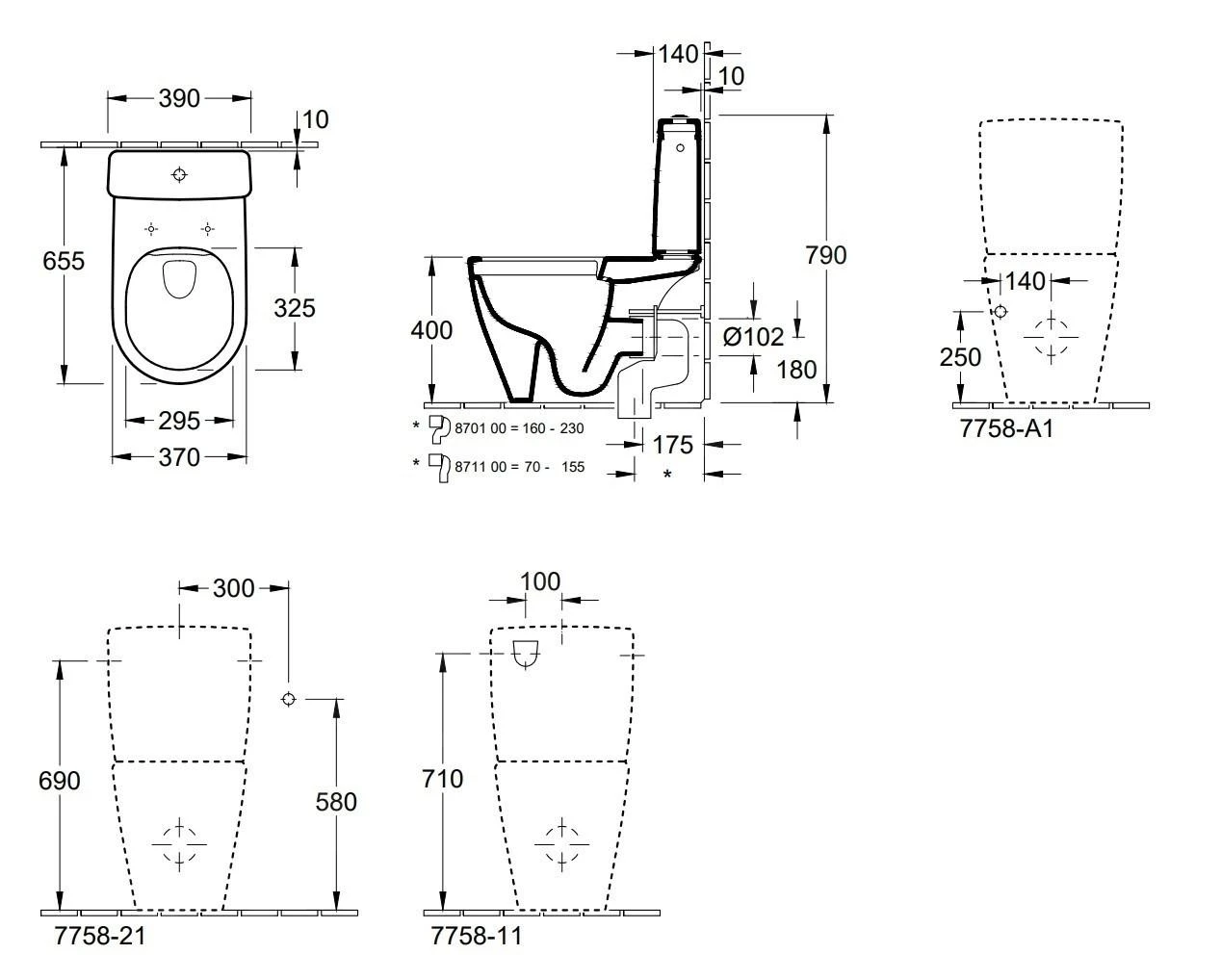 Staande duoblokpot voor aansluiting van spoelreservoir
