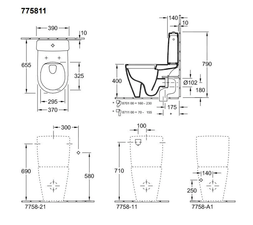 - watertoevoer aan zij- of achterkant