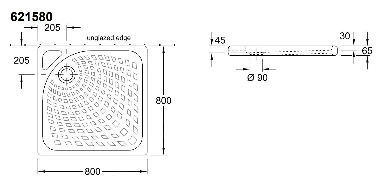 Villeroy & Boch Architectura – Douchebak, 900×900 Mm, VilboGrip, Alpine Wit UDA9090ARA115GV-01