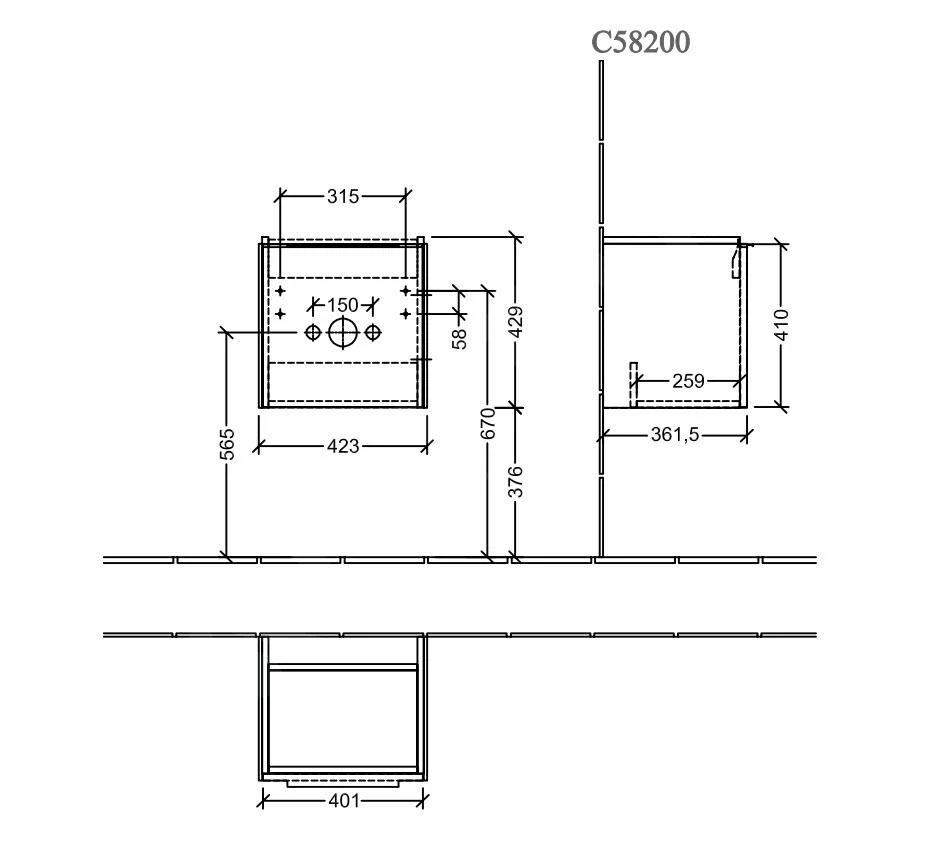 Villeroy & Boch Subway 3.0 – Wastafelonderkast, 423x429x378 Mm, 1 Deur, Grafiet C58100VR