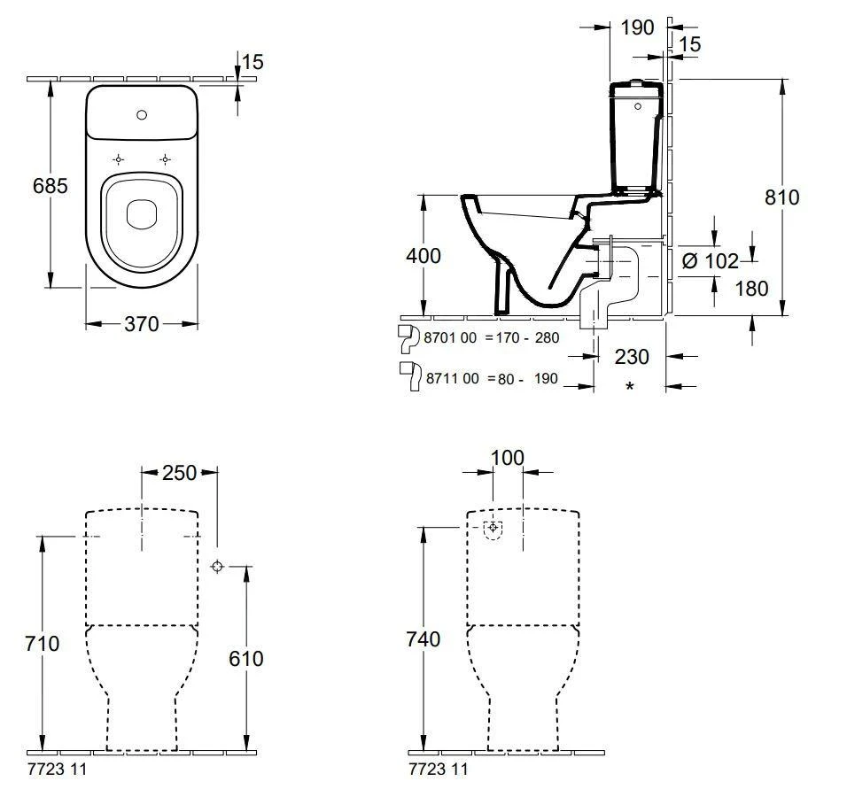 - horizontale afvoer, bij gebruik van Vario installatieset is aansluiting op verticale afvoer mogelijk
